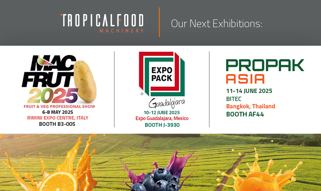 Negli stessi giorni, dall’11 al 14 Giugno, ci troverete a Bangkok, Tailandia, per partecipare all’edizione 2025 del PROPAK ASIA, un appuntamento che avrà come focus principale le nostre linee di lavorazione per banana, ananas e mango.